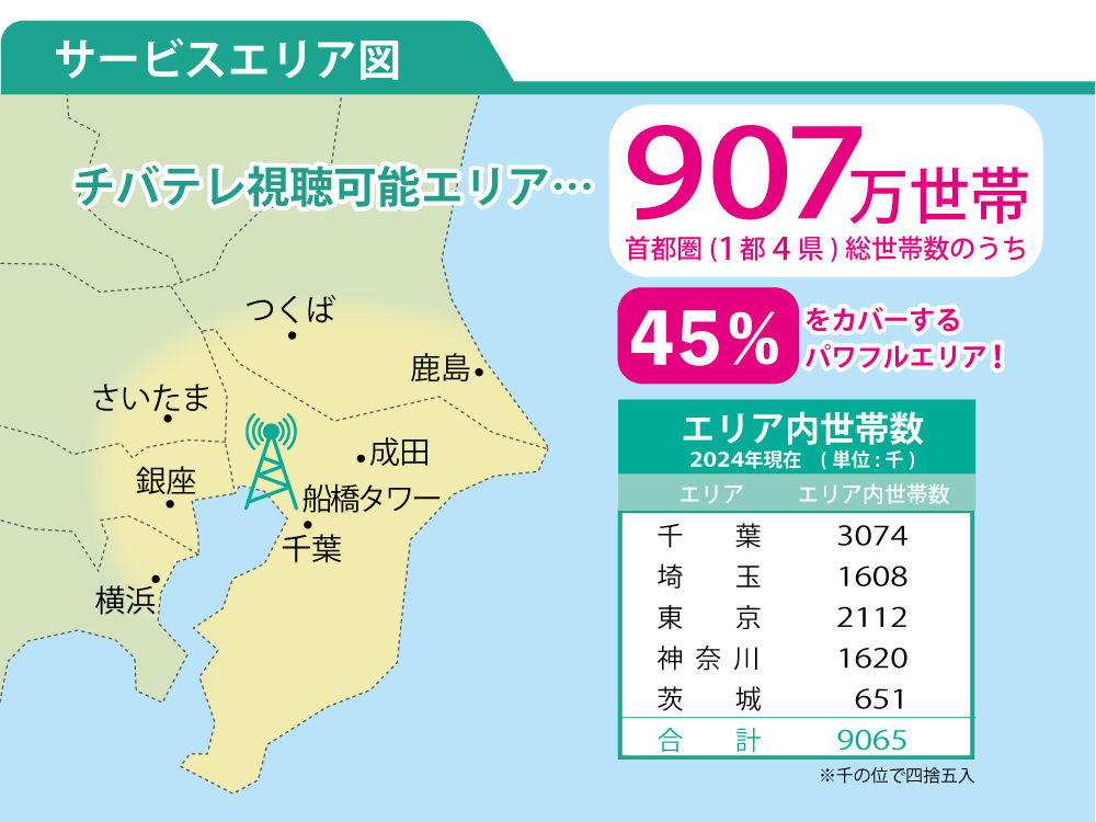 | ちばテレビメディアネット | 〒260-0001 千葉市中央区都町1-1-25 (チバテレ本社内2階) Tel 043-233-6680 |